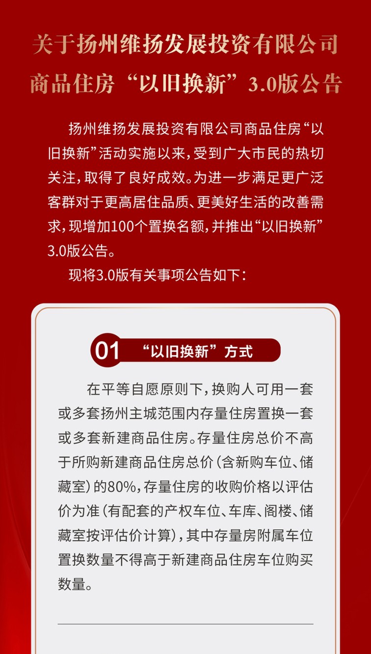 為進(jìn)一步滿(mǎn)足更廣泛客群對于更高居住品質(zhì)、更美好生活的改善需求,維投地產(chǎn)公布了“以舊換新”3.0版本,將維投·山河序也納入置換范圍,預計本周五(5月23日)正式啟動(dòng)置換流程,同時(shí)接受預約登記。